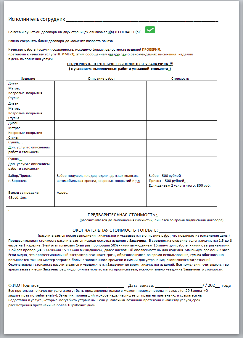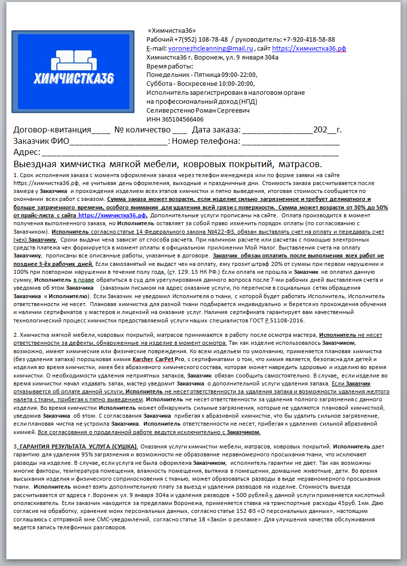 Несколько сотен клиентов уже сумели достойно оценить преимущества работы нашей организации Химчистка36. Клининг для организаций – это всегда внимательное отношение к заказчику и профессиональный подход к выполнению поставленных задач, именно такими принципами руководствуются сотрудники нашей команды.
